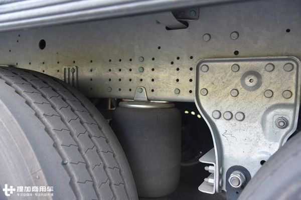 悬架系统采用的是介于空气悬架和钢板簧悬架之间的拖曳臂式空气悬架系统,该悬架前半部依然保留了钢板簧结构,但后半部分却加入一个气囊。
