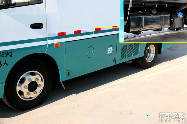 轮胎型号为7.00R16。小尺寸的轮胎,再加上全车采用了铝合金的轮圈,整车在自重方面能够得到很好的控制,可以达到上蓝牌的要求。