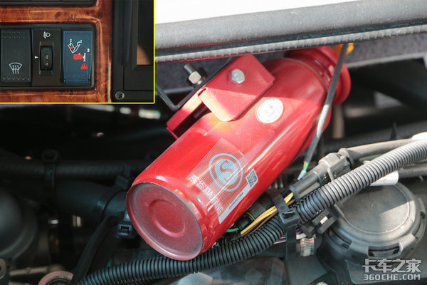 另外,值得一提的是,由于这种车型采用的是发动机中置的方案,发动机舱就位于驾驶区域正下方,并且还不能像卡车那样把驾驶室掀起来,因此,这款车的发动机两侧直接配备了两罐灭火器,用于应对突发情况,其开关就位于中控台上。可以看出,厂家对它的安全性还是非常重视的。