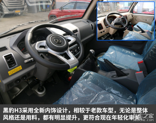 新款黑豹H3在内饰上进行了全新升级,无论是装配工艺还是设计风格,都有了明显进步,更加符合现在年轻人的审美观。其3.7米的长货厢,为日常运输带来了较为不错的装载能力,足以满足平日商超配送、建材运送、货运出租、瓜果等农副产品运输。