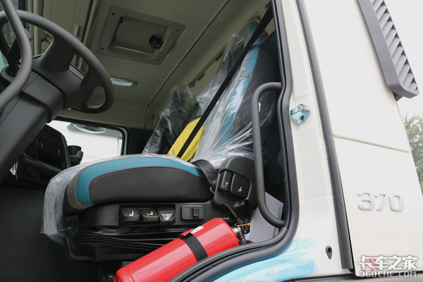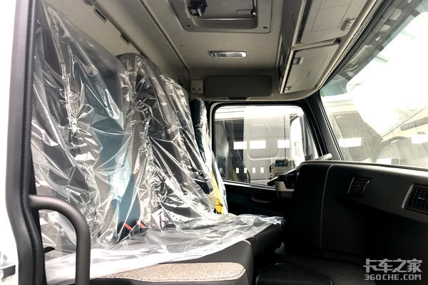 虽说驾驶室采用了平顶单排设计,相比排半驾驶室更低更短,但是驾乘舒适度没有降低,主驾驶座椅采用伊思灵品牌,气囊减震带有仰角调节、阻尼调节、座椅高度调节、座椅通风、靠背两段式调节等功能。