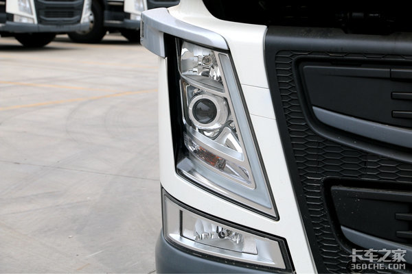 大灯则是氙气光源,近光灯带有透镜,能够更好的聚光,日间行车灯跟它的大哥FH一样,在大灯的“内眼角”,回形标造型。大灯带有随动转向和清洗,跟牵引车型一致。