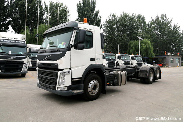 这款沃尔沃FM是一台专用车底盘,还没有上装,据介绍,这款车能够上装多种专用设备,包括消防、勘探、电视转播等领域。