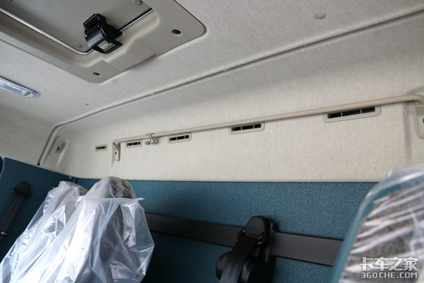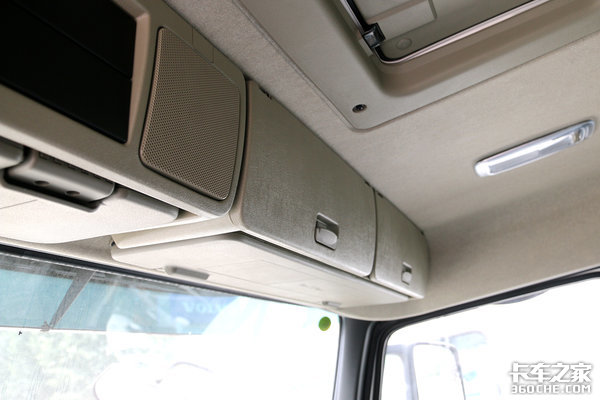 虽说是平顶驾驶室,但是头部还是预留了小储物格,放一些尺寸较小的物品,还是很方便,也能够给驾驶室节省空间。