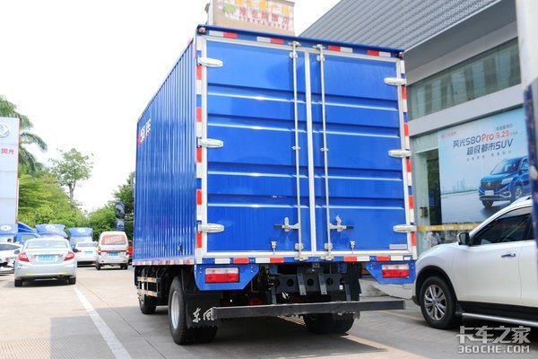 东风凯普特货厢长宽高最大尺寸为4.2、2.43、2.5(m),容积约为25.5立方,在同级当中非常具有竞争力。不过安装如此大的货厢如何保证行驶安全,也是我们除动力外最好奇的项目。