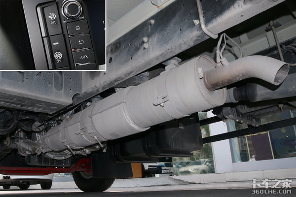 国六标准车型主要通过SCR和DPF等技术路线,所以后处理装置体积会比国五时期更大。驾驶室也增加了DPF(柴油机颗粒物捕捉器)的开关,便于手动清理(再生)DPF中的污染物。