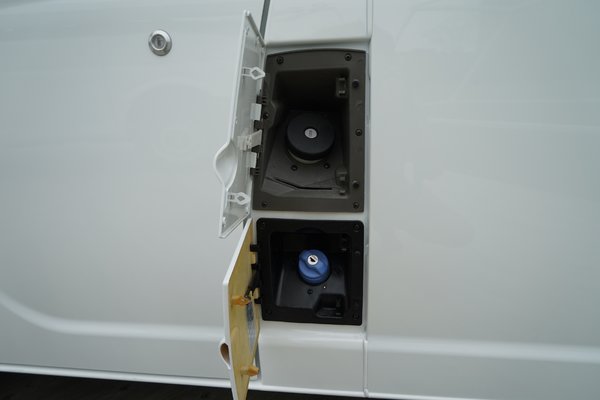 带锁的加油口和尿素添加口均在驾驶员侧门处,方便加注。