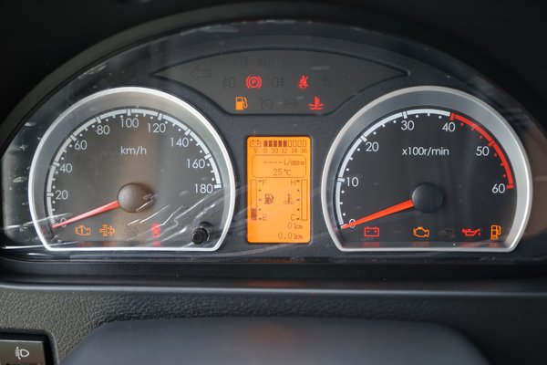 仪表板信息简单易读,时速、转速、电压、水温、燃油量、油耗及车外温度一目了然。