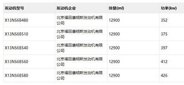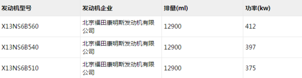 在装配车型方面,福田康明斯X13发动机首先是欧曼在国六阶段的主要动力之一。2019年8月6日,在工信部发布的第322批新车公告中,我们就可以看到搭载康明斯X13发动机的欧曼国六重卡。