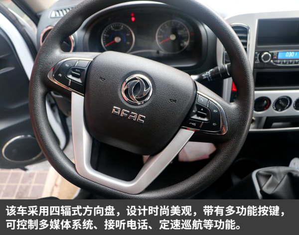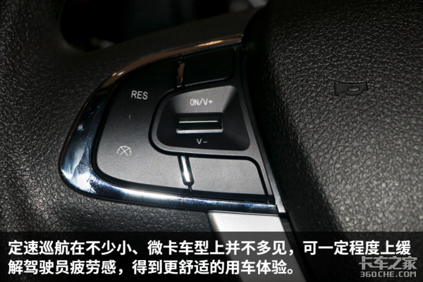 这是我们在小、微卡车型上首次见到“平底式”方向盘,过去大多出现在一些性能车上。这样的设计出了更加个性化之外,对体型较胖的卡友来说更为友好,方向盘调整幅度更大。