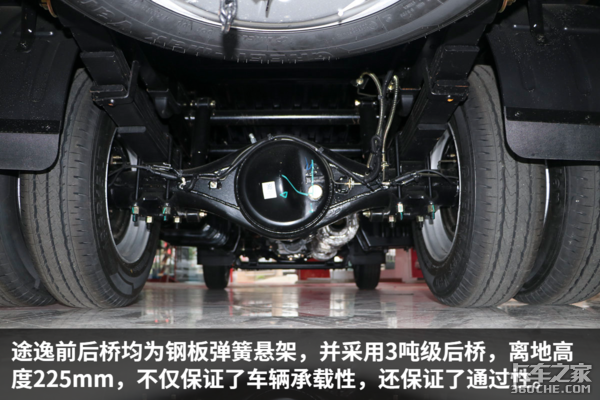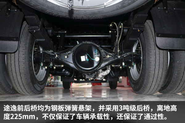 为了进一步保障车辆承载力,东风途逸采用140mm锰钢直通车架,同时轮距加宽100mm,在承载性和行驶稳定性上都有了明显提升。