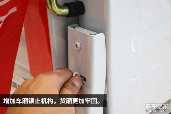 在货厢尾门打开的情况下,此处锁止机构仍可以作为立柱来固定两侧门板,防止涨厢。