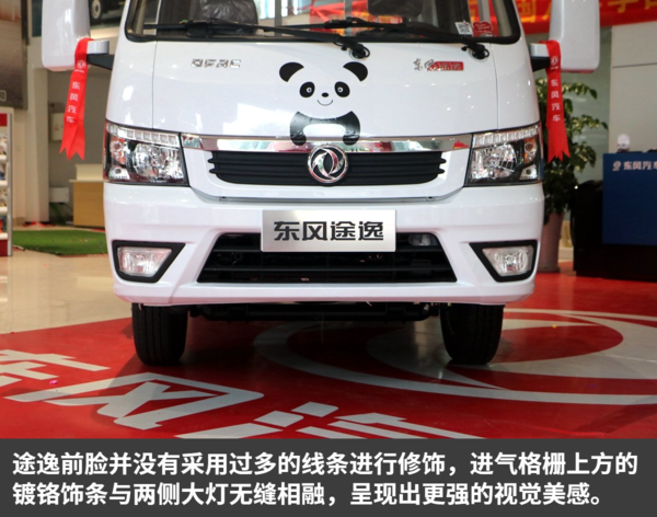 为了适应当下不断年轻化的客户群体,东风途逸在整体设计上立足年轻化,以充满活力、动感的设计语言来满足个性化的用户需求。并且,经销商特意为这辆车设计了一个很萌的熊猫图案,与前脸互相搭配,更显个性化。