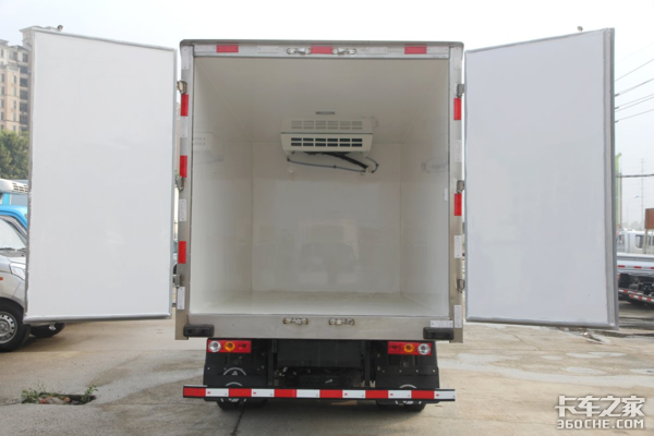 货箱配后双开门,后门框为不锈钢,以及加厚型不锈钢后门合页及锁件,经久耐用不易腐蚀,且美观大方。