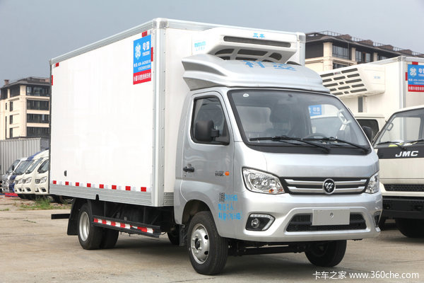 该车型安装了安装三丰SF-S360制冷机组,可满足此车冷冻低温货物运输使用,温度最低可达-15℃左右,该制热采用的家用空调四通换向阀的原理操作,对制冷机蒸发器和操作元件质量都有提升要求,不是一般厂家采用的除霜加热的原理。