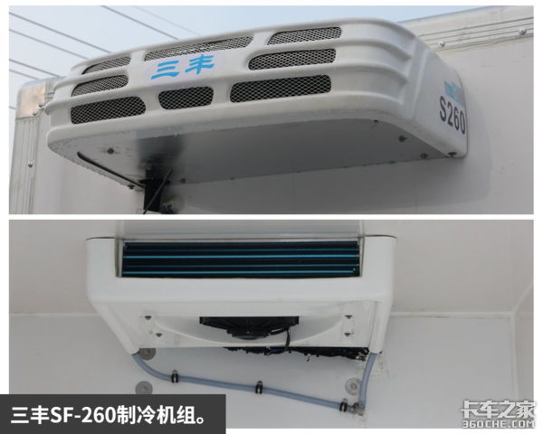 福田祥菱V1小型冷藏车制冷机组有多重选择,分别为三丰的SF120制冷机组、SF-LC120制冷机组+制热功能、SF-LC180制冷机组以及SF-S260制冷机组,而此次实拍车辆使用的是SF-260制冷机组,制冷温度在-15度左右,适合高档冰激凌,并且此冷机带除霜功能。