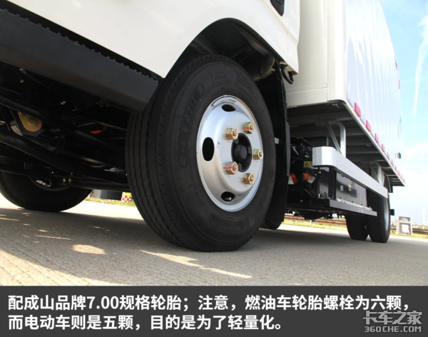 我再总结下这款车是从哪里“减肥”了!前桥后桥用了少片黄,前后盘式制动,空心稳定杆,轮圈总成,这几样减重达到40kg左右,还有铁铝,全铝的货箱,相比铁箱,能减轻200-300kg,这样的话,我们就可以合法拉多点货了!