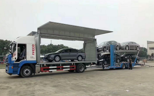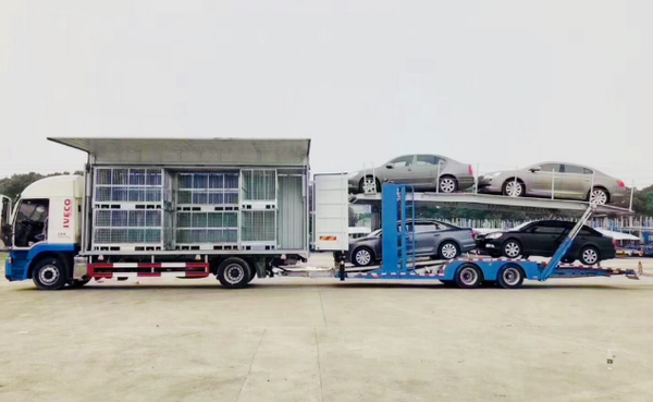 后半部分的轿运车挂车,最少可装载4台商品车,极大的降低了空载率,提升了物流效率。