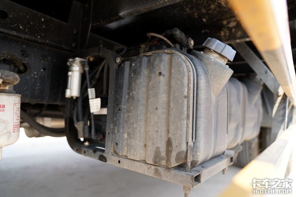 车身左侧布置了燃油滤清器、尿素罐、油箱,布局并无太多花哨,油箱容积为100L,车辆的良好续航性能得到了保障!