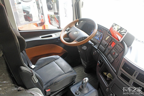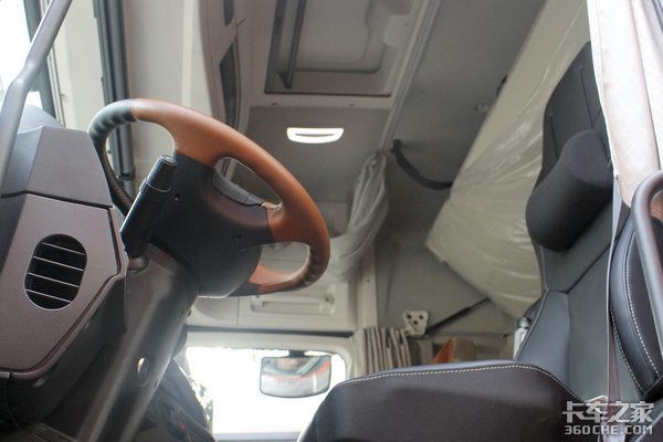 驾驶室内部采用欧式驾驶室设计,再加上整车采用平地板,内部空间十分宽阔。