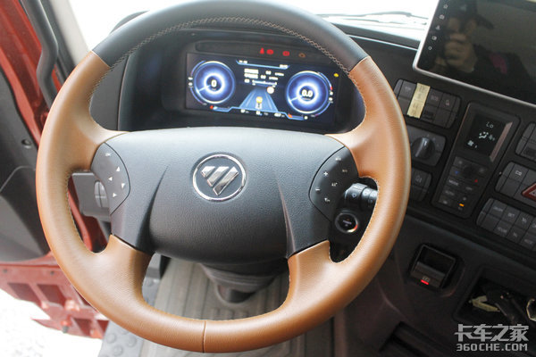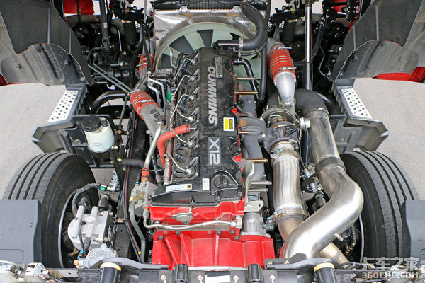 实拍车搭载福田康明斯X12-460发动机,发动机排量为12升,智能燃油喷射,最大输出功率为460马力,最大输出扭矩为2300牛米。带有iBrake2.0发动机制动,可提升行车安全性,减少刹车片磨损。