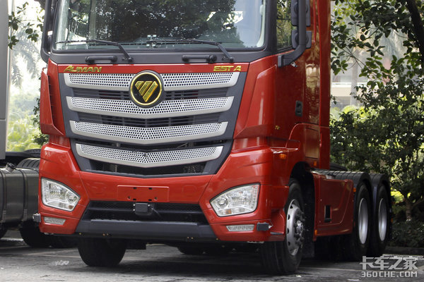 实拍车整体外观设计延续欧曼EST-A家族化设计,不规则五边形蜂窝状进气格栅提高整车档次感,并且让整车看起来威猛霸气,可谓是点睛之笔。整车标识采用暗金色喷涂,提高整车辨识度。