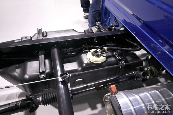 新欧胜采用100L大容量塑料燃油箱,续航能力更强,该油箱的放置位置很有特点,在底盘下尽量往传动轴靠,这样设计既保证了容积也节省了空间,离地间隙也达到了320mm,不容易拖底。