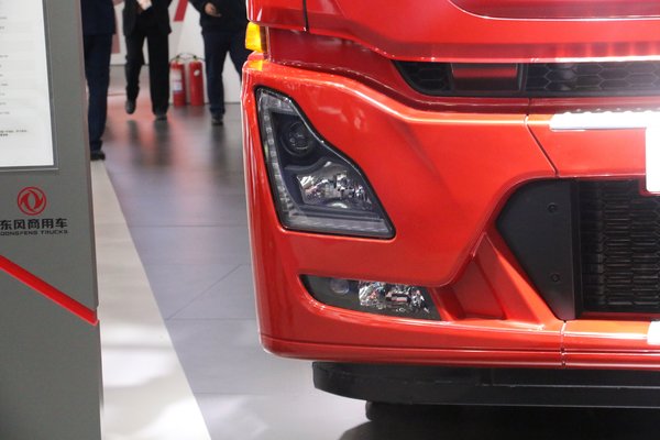 大灯和雾灯的组合造型很像一只睁开的“鹰眼”,大灯外侧有一个箭头样子的LED日行灯。近光灯带有透镜,夜间开启时,灯光铺路效果会非常好,截止线也很明显,不会影响对面司机的视野,远光灯则采用了反光碗式。值得一提的是,天龙KL转向灯也采用了LED光源,十分高大上。