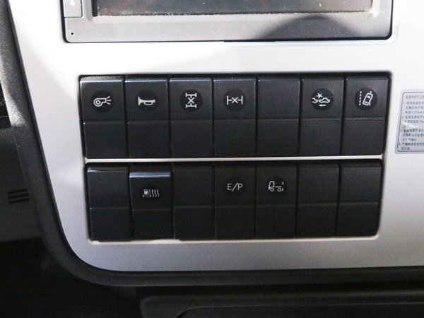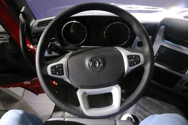 这里多说几句,早些年东风车上都有日系车的影子,当时的灯光旋钮都集成在方向盘后方的拨杆上。自从东风和沃尔沃合作后,驾驶室的设计风格也逐渐转向欧式风格,像这种旋钮灯光控制就很欧卡。