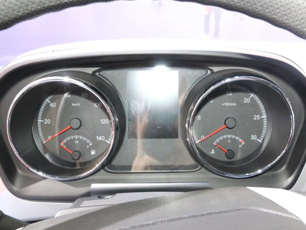 仪表板为双炮筒+液晶屏组合。左侧指针为时速表和油量表,右侧指针为发动机转速表和水温表,中间液晶屏区域则显示其他信息。