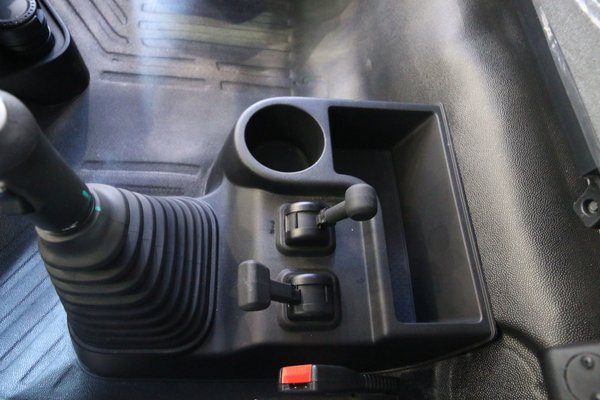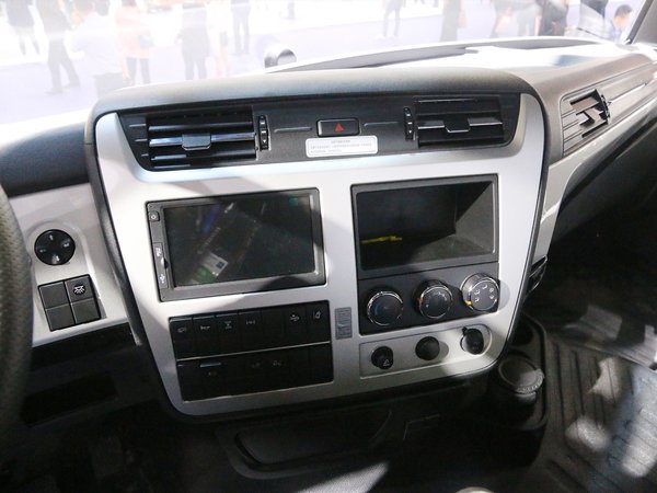 位于变速器挡把后面是车辆断气刹和挂车气刹手柄,旁边还有一个水壶槽及一个较大的储物格,随手放点什么都很方便。
