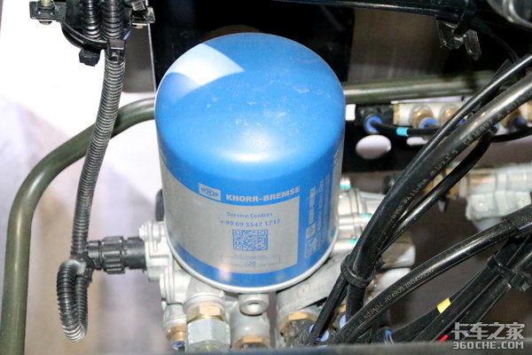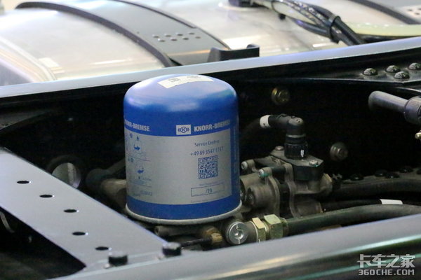 只要一提起卡车的空气处理单元,我们都会下意识的想到威伯科、克诺尔和国产瑞立。前两年的卡车上,一看到空气处理单元,黑底白字的威伯科在牵引车上很常见,稍微低配的就是黑底蓝字的瑞立,而这次展会上,我们几乎在各家都见到了蓝罐克诺尔空气干燥罐。