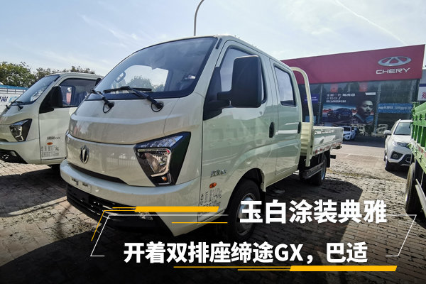 今天给大家带来一款双排座缔途GX微卡,它既能载人又能装货,车辆用途甚是广泛。这辆车车身外观以玉白色涂装,跟深黑色相搭配,车辆整体看起来靓丽而典雅。