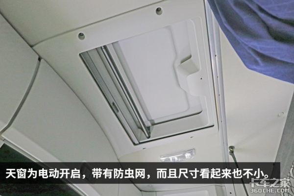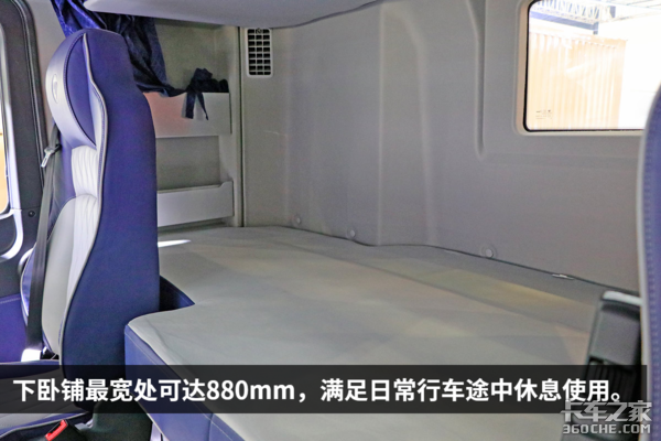 采用高顶双卧设计,驾驶室纵向空间充裕,身高180cm的男子可在内部直立行走。