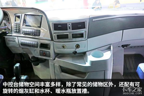 在空调下方还设计有卡槽,可以放置高速卡、油卡等常用卡片。配备有电磁风扇锁止开关,在发动机怠速且开启空调的情况下,锁止风扇,提高空调制冷和散热器冷却效率。