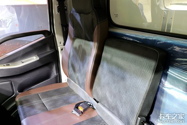 另外通过后移手刹,让主副驾座椅保持相同的平面,如果驾驶员在等货、装卸货时想要休息一会,可以直接铺上自带的床垫,躺平休息,堪称隐藏的单人床。