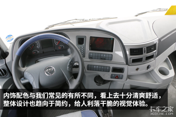 内饰自然也是直接关系驾乘的舒适度,欧曼的内饰风格一直比较注重人文关怀,也是基于德系血脉的一种体现,整体的功能更注重人的方面。并且,内饰很多细节的确不错,包括方向盘与座椅同款配色方案、一目了然的功能布局、清爽的设计风格等等,都能带来舒爽的体验。