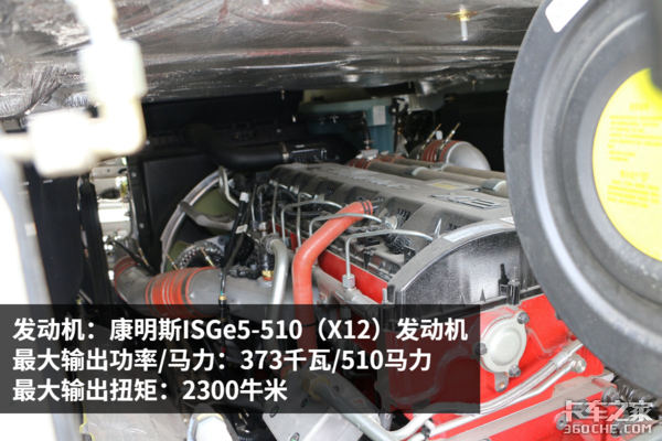 该车搭载康明斯X12系列发动机 ,最大功率373千瓦/510马力,最大扭矩输出可达2300牛米,满足国五排放标准。在燃油经济性方面,康明斯X12系列发动机进行了全面的优化升级,采用轻量化模块设计,并使用2000pa的XPI超高压喷射系统,让油量控制更精密,燃烧更充分。同时进一步优化动力效率,让发动机保持较高的燃油效率,实现全方位节油。
