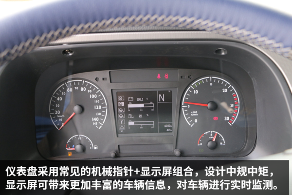 根据后桥速比2.714,轮胎12R22.5。变速箱处于直接挡时,通过卡车之家车速计算器可算出,车辆在1200-1300经济转速区间,车速达到了87-94km/h,是一款特别是适合快递、医药等高附加值货物运输的公路车型。