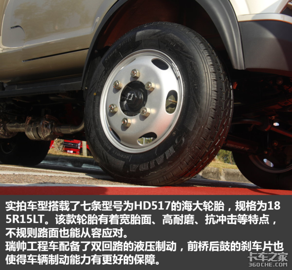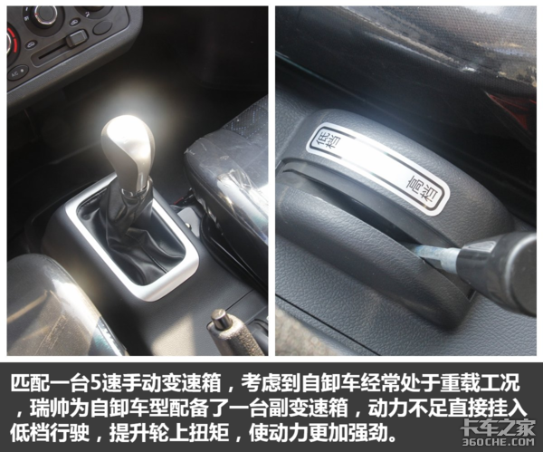 实拍车型配备有一台2.3L柴油发动机,在动力参数上与主流微卡产品并无区别。但是对于工程自卸车型来说,这样的动力水准可能有些捉襟见肘,不过实拍车型配备了副变速,提升车辆重载时的动力性,爬坡能力也更强。在最重要的装载能力上,瑞帅工程车也做了一系列的优化设计,保证瑞帅工程车的装载能力。