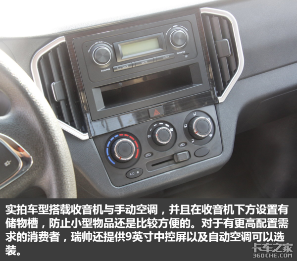 瑞帅的驾驶舱内空间表现不错,充裕的空间保障了驾驶员的驾乘体验。在科技配置上也属于当下微卡车型的主流水准,并且提供大量选装科技配置,不仅仅让车辆更具个性化,对于无科技需求的消费者也减少了不必要的开支。