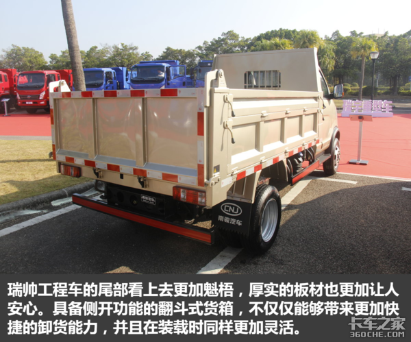 面向旺盛的城建需求,南骏以瑞帅微卡为蓝本,打造的这款瑞帅微型工程车的表现究竟如何,我们接着向下看。