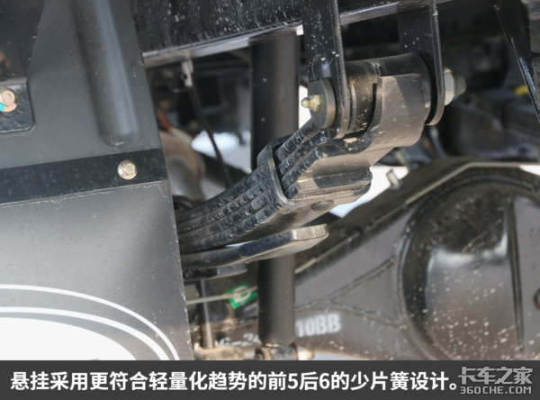 少片簧结构拥有更轻的质量,相比多片簧能够减轻30~50%的重量,随之而来的是油耗的降低。少片簧悬架还具有寿命长;能够提升行驶平顺性与稳定性;减轻板簧间摩擦,运动噪音小;得益于其具有稳定的弹性特性,长期使用变形小等特性。
