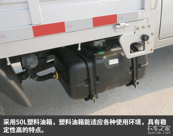 宽大的直通梁、全浮式后桥以及少片簧和后双胎的搭配,可以从底盘配置上对比出差别,这款车要比传统的微卡用单胎、面包车底盘的承载力要更强更能装行驶更加平稳。
