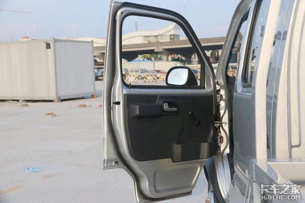 车门采用全方位加厚密封条,双密封胶条保障静音效果。为保证驾驶室侧面的刚性,车门还加装防撞钢梁,以此来降低驾驶员因受到侧面撞击而溃缩带来的伤害。