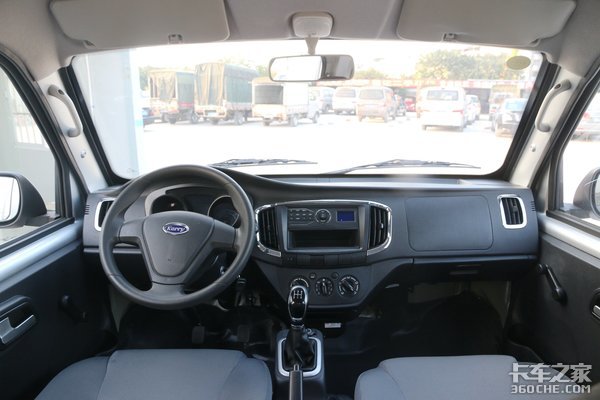 在配置上,中控台区域集成了液晶电子屏显示的收音机、USB接口、12V备用电源、冷暖空调操作面板及空调出风口等功能,符合这个级别微卡的主流配置。