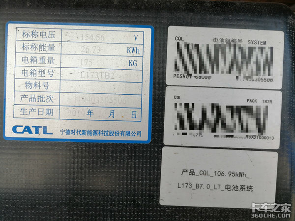 107度电车型的动力电池采用宁德时代的L173TB2型号磷酸铁锂电池包,单包电量26.73kWh,共布置4个电池包,左右各布置2个电池包。能量密度达到了153.84Wh/kg,在能量密度上领先对手。整车电压平台为618.24V。