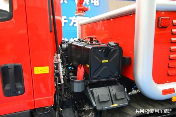 油箱、尿素罐与电瓶,改装厂专门在驾驶室后部做了一个平台来安置它们。