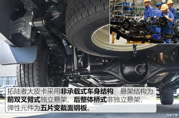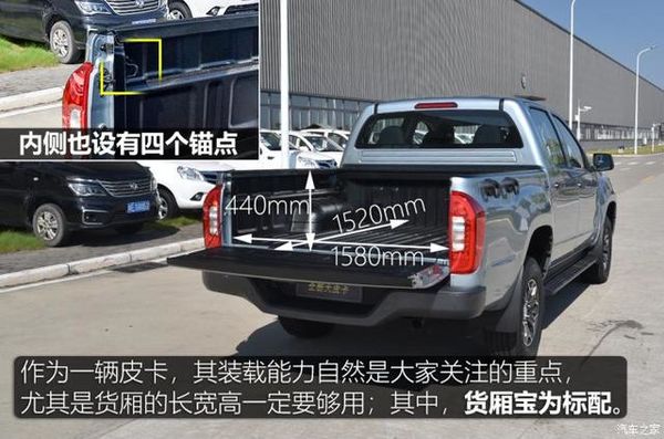 值得一提的是,拓陆者大皮卡在货厢内外都配备了固定锚点(亦称绳钩),方便用户对货物进行捆绑固定;而龙门架(尾厢护栏)则是选装项。