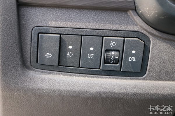 前后雾灯、大灯高度调节按钮、DPE再生按钮都布置在仪表盘的左下方,驾驶员操作很方便。